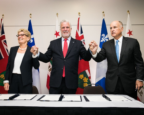 在签署这个协议后,安省将可于2018年1月1日起踏足魁北克–加州碳贸易市场,三方政府并可联合拍卖温室气体所设定限量,以及各自调节涉及的相关管理法规与报告的运作。签订的协议将能加快步伐,增强三地政府合力对抗全球气候变化的工作的进度,反映三地政府同心协力达成巴黎协议(Paris Agreement)所设目标的决心,以及肯定三地政府超越边界地域障碍而合作的价值。