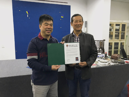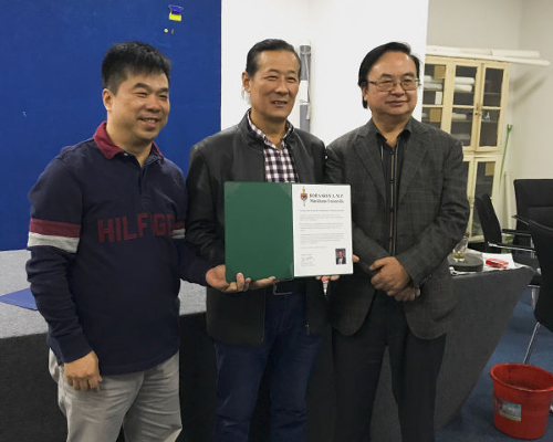 转呈第二届国际文化艺术节加拿大国会议员颁给齐美生的奖狀