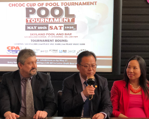 加拿大黑龙江总商会会长黄屏、加拿大职业桌球联赛CPA联盟主管Michael Romita、联邦国会议员谭耕助理Sundy黄智勇博士、万锦市市议员杨绮清(Amanda Yeung Collucci)等嘉宾出席新闻发布会并致辞,给予大赛肯定与支持。比赛总裁判长Roger Li也在现场详细介绍了本届比赛的章程和赛制。下面是第一届“黑龙杯”慈善桌球公开赛活动详情。