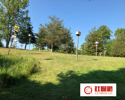 至于Bird House City,笔者从网上了解到的信息是超过100个Birdhouse,小孩听说,有点感兴趣!到现场之后,笔者才发现,Birdhouse City位于Macaulay Mountain Conservation区内,听说很吸引人。但在笔者到达时,游客真的罕见,到底是酷热的影响,还是已经傍晚的原因,笔者不得而知。因为没有游客,看到公园用车停在草地上的阴凉区,笔者也毫不犹豫将车停在其旁边。候小孩准备妥当,我们往Birdhouse City走。