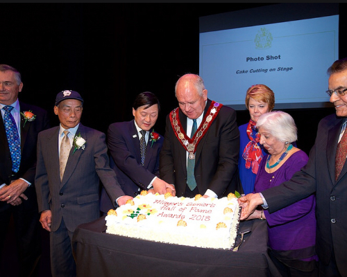 市长先生请出特别嘉宾,城市历史学家Lorne Smith为来宾们介绍了我们城市的建设与发展,特别提到城市服务设施,为老人们们提供了健康、舒适的环境,使他们能自如、自在、自立、自强地生活和娱乐。老年人作为不可或缺的重要社会角色,他们健康的,积极向上的生活是我们城市和谐发展的一道美丽的风景。接着,市长长者名人堂委员会主席Yash Kapur发言,他的发言中大力表彰了杰出长者们的奉献精神,他们自强自立,各展所长,不遗余力地发挥自己的作用,贡献自己的力量,为不同的群体,不同的社区以及整个城市的更多人群做出贡献。