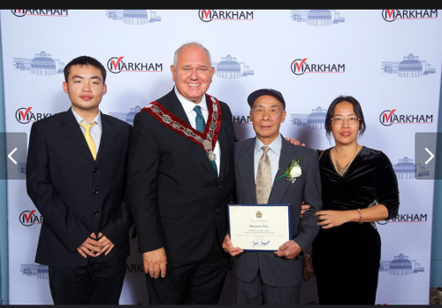 金秋送爽,枫叶渐变红黄,忽冷忽热的加拿大秋天乐事不断。就在10月1日,庆祝祖(籍)国-中国69岁华诞之夜,由万锦市市长亲自主持召开的“庆祝加拿大长者日暨加拿大万锦市市长杯杰出长者表彰大会”在万锦市Flato大剧院隆重举行。大家之所以那么高兴,是因为“欢乐人生”中的一个名叫谭儒煊的老人获此殊荣。特别是政府官员颁奖给服务社区的老人,而且是华人,这样的情况是不多见的!谭先生是我们的榜样与骄傲!谭老先生热心社区居民活动,无论春夏秋冬,凡是有活动的日子都可以见到他骑着自行车,肩背小提琴,赶往活动现场,用悠扬的琴声为大家伴奏,给大家带来欢乐!几年如一日,坚持不懈,真正的难能可贵!他获此殊荣当之无愧。