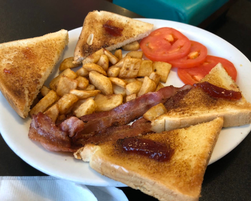靠近North Bay时,透过右边的车窗以及稀疏的树林,笔者时不时看到白茫茫的一片,那就是Nipissing湖,我们基本上是在沿着湖岸行驶。根据GPS指示,我们差不多到达目的地时,笔者将儿子叫醒,准备吃早餐。儿子找的餐馆就在高速路旁,叫做Hoagie’s Diner,当然有早餐提供。我们到达时,还不到早上9点,客人并不太多。各自点上自己所好,吃完这顿Brunch之后,我们将去了结这次安省北部之旅的重要环节—滑雪。(待续)