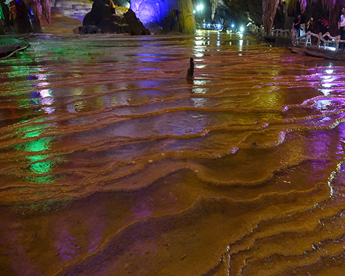 参观之后,假若您能够梦游吉星洞,您一定不会错过高大的“神象赐福”、多姿多彩的“壮乡听海”、一望无际的“稻田”、庄严的“天下第一钟”、浪漫温馨的“情定德宝”、充满情趣的“诗画田园”,每个都是那么逼真而极富情趣。让笔者叹为观止的是,洞内地势平缓,空气清新,尽管许多部分溪水潺潺,却毫无潮湿之感。不愧为“亚洲第一洞”!
