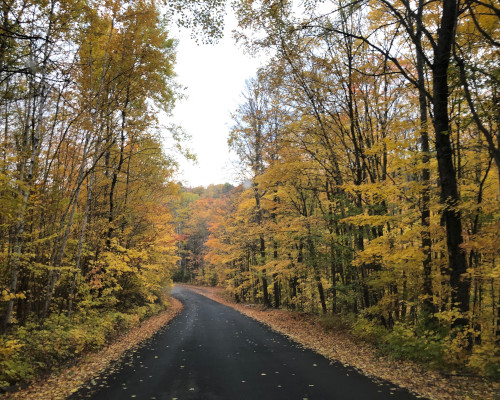 从主干道62号公路拐入Eagles Nest Park Road,就知道景点已经不远了!不过,因为观景点在一个山顶上,小道很陡!估计是游客比较多,到达顶部附近时,路旁停满了车。但笔者没有停留,一直往上走,运气不错,在最顶部竟然有一个停车位等着我!