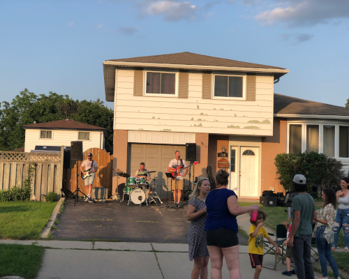 循着声音,我们往前走。在街道拐角处,音乐声更响亮,绝对属于一场不错的现场音乐会。到了街角,笔者往前望,在一个人家的车道上,音乐会正在如火如荼地演绎着。而在演唱会现场,围观观众不少,而在远处,三三两两的家庭也都出来欣赏。更有甚者,有的甚至在街道上摆起烧烤炉,一边听着音乐,一边享受自己的美食。