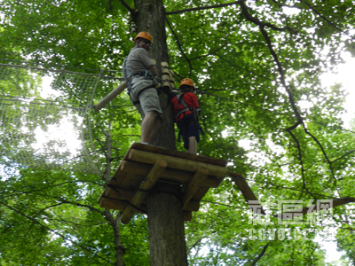 这是记者第一次接触树上探险公园,所以有必要给自己扫盲。据网上介绍,树上探险公园是迎合对大自然高需求旅游的积极性而发展起来的,尤其在欧美地区流行。它起源于法国,第一个树上探险公园1995年在法国阿尔卑斯山建造,目前欧美已经拥有6百多个树上探险公园。它被中国定义为融合低碳、绿色户外等环保概念及休闲生活方式,同时也是一种激发游玩者挑战自我雄心、提高自信心并且享受在心灵深处认识自己的娱乐活动。有人用16字来概括树上探险公园的特色:老少皆宜、绿色回归、健康户外、自信快乐!