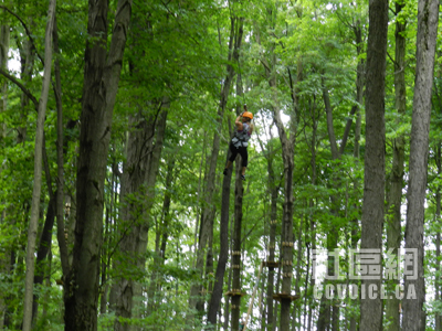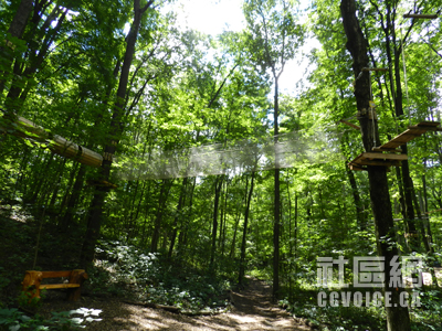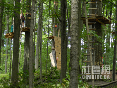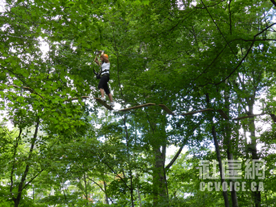 [本报记者 伦敦摄影报道] 在行走山水之间,本报记者无意中前往Boler Mountain,走访了新近开放的树上探险公园(Treetop Adventure Park),被这个项目所深深吸引。在现场采访和拍摄大量照片之后,记者觉得有必要给华人朋友积极推介,因为这确实是一个难得的老少皆宜的户外运动,绝对有益健康。树上探险公园适合人群广泛,只要有一定身高、身体健康的人群都可以参与,低至8岁的未成年人,高至65岁的乐龄族均可以参与。