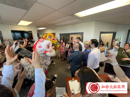 现场颇为意外的嘉宾是土耳其驻多伦多总领事馆总领事Sinem Mingan,她讲话不多,但借此机会感谢Paul Chiang对土耳其社区所做的服务,并恭贺办公室开张。同样是新晋国会议员的Leah Taylor Roy表示,她对Paul Chiang的敢言敢行表示钦佩,而Jean Yip颇为羡慕(开玩笑说)办公室的豪气,陈圣源也轻松地介绍自己与Paul Chiang是远亲,董含鹏是唯一用国语给大家推介,他强调选区办公室非常重要,甚至比渥太华的办公室更重要,因为这里是为选民服务的重要基地。