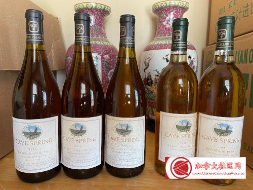 在笔者收到的这批葡萄酒中,名为Cave Spring的竟然有5瓶,可见藏友对其所好。这5瓶葡萄酒都是标注年份都是1998年,不过三瓶是Chardonnay Musque,而余下两瓶是Sauvignon Blanc,标准容量750毫升,酒精含量12.5%。