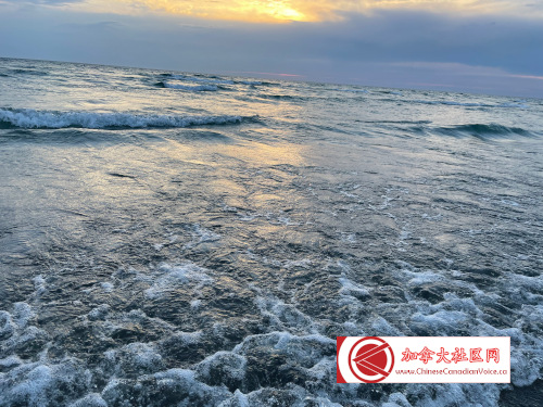 颇为神奇的是,已经是傍晚时分,但迎面而来的湖风竟然感觉到一阵暖意,让人十分舒服!走在细腻的沙滩上,尽管潮起潮落,破浪滔滔,却让人感受到一份宁静,这可能就是自然的伟力了!湖边玩水的孩子们,乘风破浪,是不是享受到与天地同在的乐趣,笔者不得而知。不过,笔者能够感受到他们的兴奋所在,即使岸边的父母在呼唤,他们依然久久不肯离去!踏着余辉,我们也准备离去!计划第二天再回来。