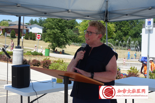 在庆祝仪式上,市长Berry Vrbanovic顶着烈日到场,并发表热情洋溢的讲话。在讲话中,他赞赏那些为该社区中心重建扩建做出贡献的人们与机构。同时到场的嘉宾还包括第四区市议员Christine Michaud和Kitchener Public Library Depputy CEO Penny-Lynn Fielding等。记者相信,到场的VIP还包括其他一些议员与社团负责人,只不过记者不那么熟悉罢了!