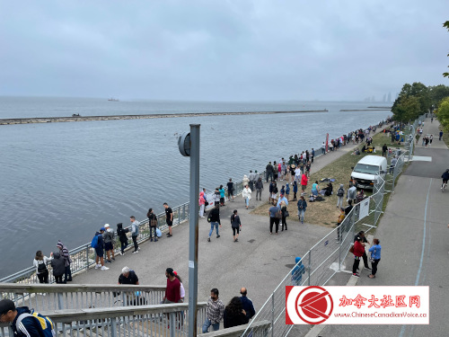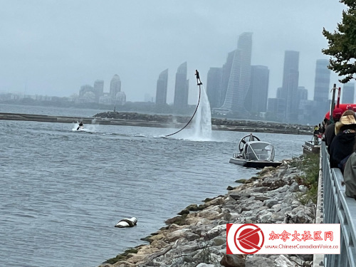 午餐之后,我们前往Ontario Place,按预定计划加拿大国际航空展(Canada International Airshow)中午12点过后开始,一直延续到下午3点。穿过横跨在Gardiner Expressway上人行道,我们就到了湖边。尽管寒风飕飕,冷气逼人,但航空展的吸引力很大,观众不少。