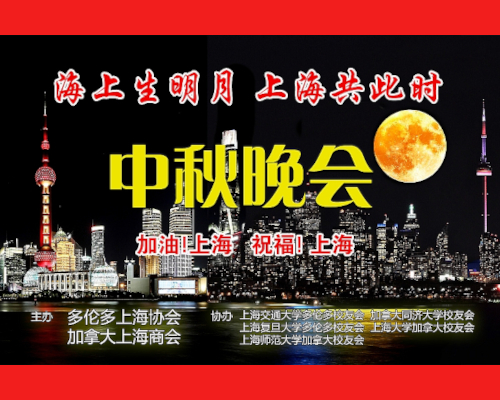 《海上升明月,上海共此时》中秋晚会于2022年9.4,晚7:30,在大多伦多文化中心何伯钊剧院盛大举行。