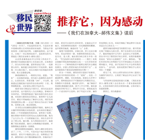这三部文集是了解真实的加拿大移民生活的窗口,也是更好地适应加拿大学习和生活的好帮手。文集被中国现代文学馆馆藏,并荣获国际大雅风海外华语文学奋进创作奖。
