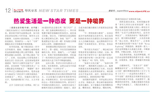 郝伟以记者的眼光、教师的身份记录分享她在英国和加拿大的学习和生活经历。题材丰富多样,非常接地气,特别是积极乐观的生活态度带来的感染力,使得2016年出版首部文集后就引起不小反响,受到众多读者的高度好评,电视台等媒体进行了专访报道。