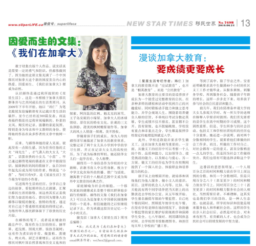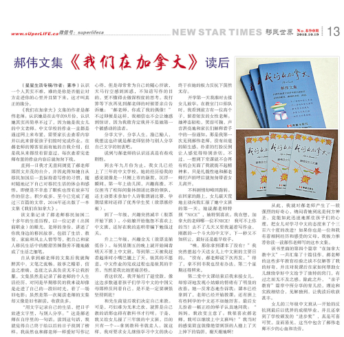 2018年出版的第二部文集令人称道的亮点是郝伟结合自己的教学心得,将在加拿大的中文教学部分以专题形式单列成章,极具实用价值,深受同行及家长们欢迎。而且增加了两个生长在加拿大的女儿(大麦、小苗)用中文写的、曾在华文报刊上发表过的文章的份量,以孩子的视角和亲身经历讲述加拿大的小学、中学和大学生活是最有说服力的。