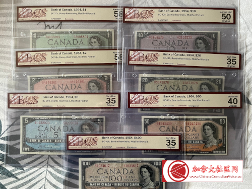 笔者统计了一下纸币的面值,不到$900。笔者原想帮Gordon一个忙,一口气照单全收,没有想到他对这些旧币的期望值还不少。笔者很理解,最后选择了其中十几张,剔除了Gordon特别看重的几张旧币,很快成交!
