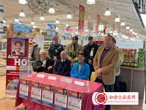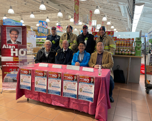 在当天记者会上,除Alan Ho以外,万锦消防局局长(Fire Chief of Markham Fire and Emergency Service)Adam J. Grant,鼎泰超市负责人Joe Zhang,以及万锦食物库代表Robert Nunn也赶到现场。作为万锦市区域议员,Alan Ho十分重视携手众合作伙伴,共建万锦市的美好未来!