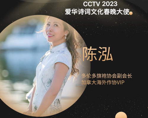 陈泓(茜茜公主)从上个世纪90年代末从上海到加拿大多伦多留学,在约克大学完成了她的第二个学位。多年来活跃在艺术领域,是多伦多旗袍协会付会长,一直致力于传承祖国文化。多伦多画中人旗袍协会副会长;加拿大海外作协VIP/浪漫派作家。她为晚会专门制作了视频,演唱一段经她指导老师张云霞张派传人-袁小云(梅花奖得主)的名段越剧《柳毅传书/湖滨惜别》选段。