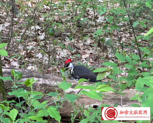 返回营地洗漱后入睡,一夜无梦!第二天醒的也不早,没有赶去看日出,简单吃了些点心,就去营地附近的Cedar Trail晨练。好在Trail并不长,2.3公里,难度级别很低。根据网上的说法,其特色就是比较集中地体现在加拿大罕见的Oak Savanna地貌!这是北美一种特殊的地貌,由于土壤贫瘠,地表多生长草本植物,而木本植物只有橡树可以存活,多见于美国,而Pinery省立公园是加拿大为数不多可见的。对于笔者来说,印象最为深刻的莫过于与安省啄木鸟(Pileated woodpecker)超近距离接触,没想到还是一位“红顶商人”。