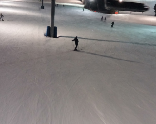 而周三晚上,笔者先吃晚餐,才去滑雪。按照天气预报,当天体感温度低于零下23度,不知道是吃饱了缘故,还是滑的比较爽,几乎不用等缆车。等到离开时,笔者竟然有一丝丝出汗的感觉,让人有些心旷神怡之感。周四小孩有游泳课程,晚上就没有去滑雪!