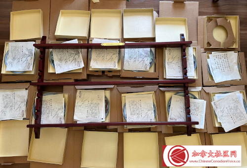 在3月中,经网友推介,笔者认识一个远在加东的藏友,他声明他的整套磁盘完整无缺!在笔者想尽办法,找到机会查看这套瓷盘时,原始包装破损严重,而且12张瓷盘中竟然有5张没有对应的证书。在笔者解释之后,卖家依然想卖给我,但不得不婉拒,原因就是这套瓷盘的不完美!