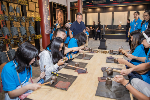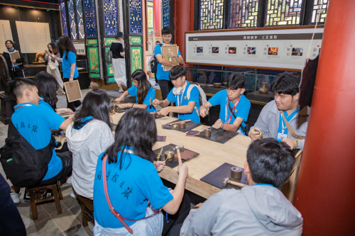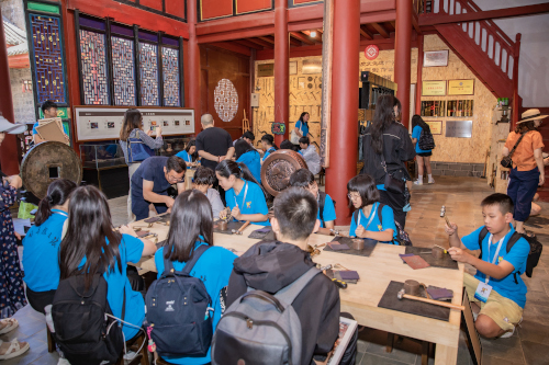 考虑到当天活动主要在会泽县,没有想到女儿强调走在路上的时间不少,好在她抓住机会打盹,精神还可以!当天前往会泽县国际级历史文化名村-白雾村,参观体验这“万里京运第一站”的人文景观与风土人情,而下午赶到德康斑铜参观学习斑铜文化,晚上乘车2小时返回曲靖市麒麟区。但从群员群里的照片看,孩子们对版刻文化与打造铜器尤为感兴趣。对于爱好画画与喜欢动手的闺女来说,版刻应该是最感兴趣的,而敲打制作铜器也会是不错的体验!