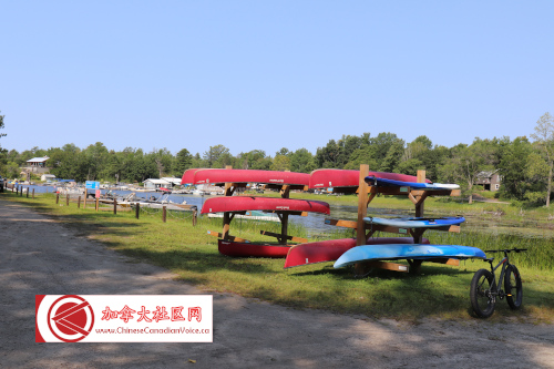 不过,对于笔者来说,这还真不是挑战!因为我通常都是将营地当作旅馆,假若条件足够,可以在营地玩;假若条件没有,就可以在营地附近玩!以前露营都是干的,而这次露营只是一个晚上,更可以这么操作!在去营地的路上,笔者前往Parry Sound打卡,午餐之后我们在往营地赶。通常省立公园营地进入时间是当天下午2点以后,我们到达时时间正合适。在办理入驻手续时,前面的几位客人都是办理租船手续,好像生意很不错!在这里入住,连打印的纸条都省了,通常一张放在车上,一张放在营地前的柱子上。笔者买了一袋木材,$10,去年是$7.5。