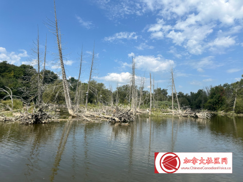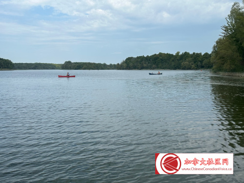 归程似乎有点逆流,笔者不得不使劲划。这边湖岸有多处下船处,也有给露营人准备的沙滩。从树林空隙,笔者可以看到有人在烧烤,有人在与狗玩。而在这个时候,笔者收到一个网友的信息(尽在微信上联系过,但并不是笔者的客户),他在魁北克,而车开不动了!他已经换了一个电瓶,但开出40公里后又不动了。考虑到他开的是2011的车,估计是发动机不行了,也不知道这位老兄平时是怎么保养的!据他说,他已经开出蒙特利尔100公里,有点叫天天不应,叫地地不灵的感觉。考虑到他附近没有朋友,我建议他打CAA,现场购买会员,然后享受服务,但没想到CAA会员有省际,他不得不买两份,一份魁省,一份安省,至于最终如何,笔者也不是很清楚,估计这趟出行额外开销会是一大笔。