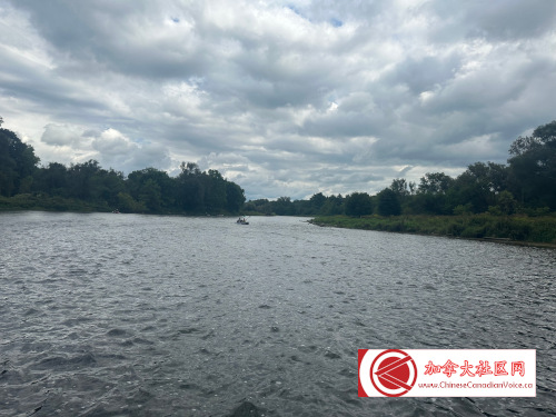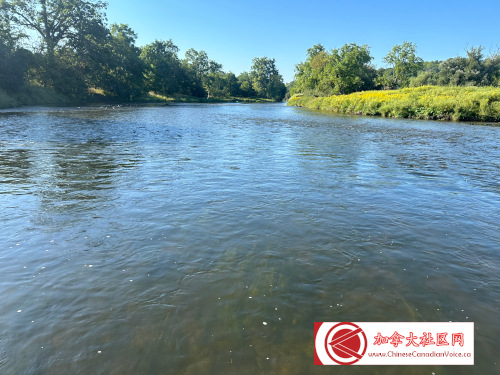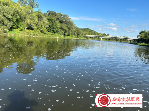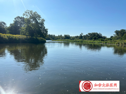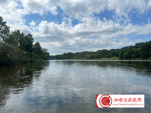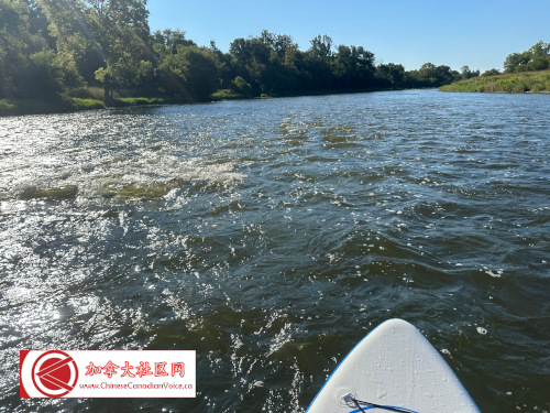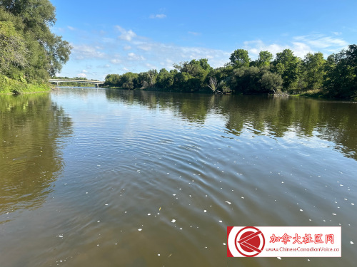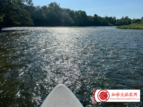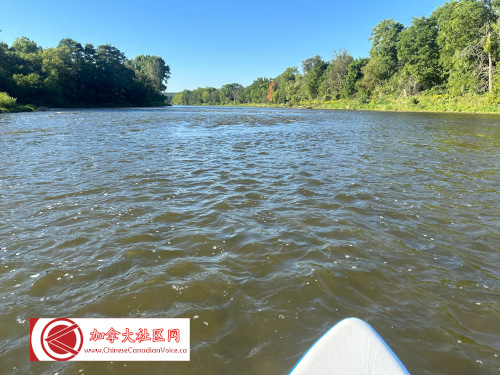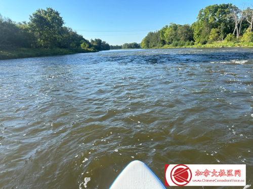 前一次在Grand River上划SUB,我选择在Kitchener的Victoria路附近下水,因为暴雨能见度受到影响,误过了预定上岸地点,一直划到Cambridge,也就是笔者颇为熟悉的地方上岸。该次漂流我选在Cambridge下水,计划顺流而下,到达Paris,全程近30公里,预定时间差不多5个小时吧!因为时长不短,趁早出发,不到9点我就在Grand River上飘着了!