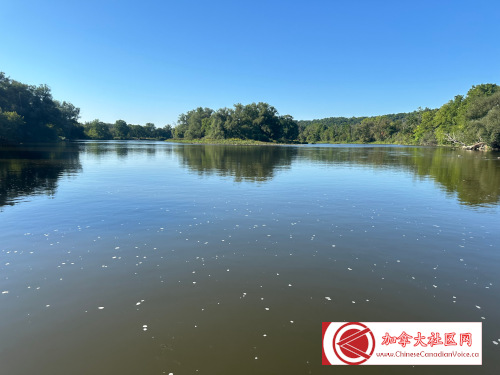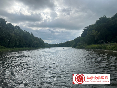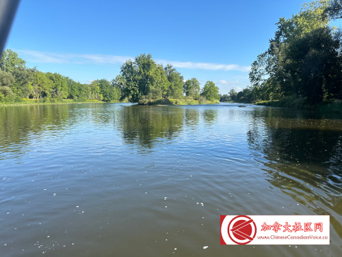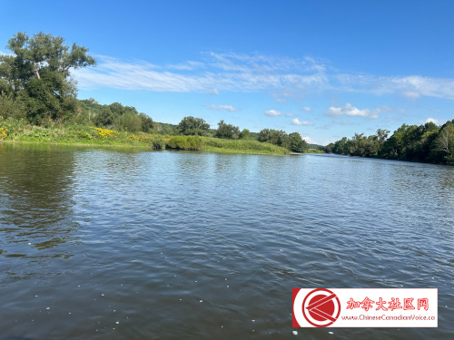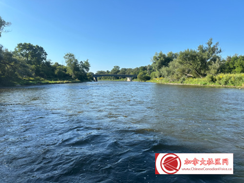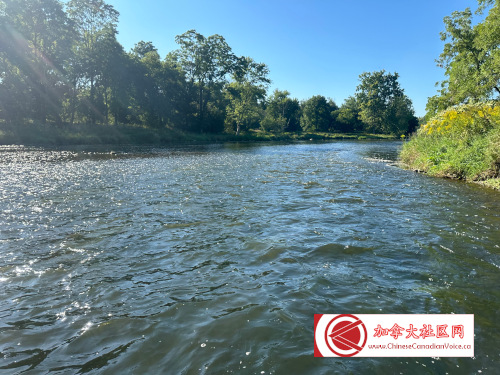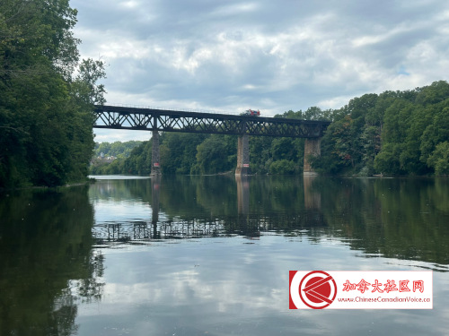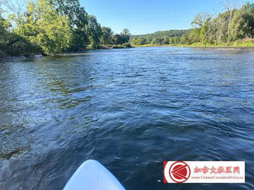 从Cambridge到Paris的Grand River水道旁边就是有名的Rail Trail,因为距离远,适合自行车骑行,不过,笔者还真的没有尝试过!这路的景色自然没得说,而从水上漂流看美景,完全是不同的风格,绝对让人赏心悦目!这条水路比上次走过的Kitchener到Cambridge要热闹多了,钓鱼的人多,Kayaka的人不少,还有许多人坐圆圈橡皮艇那种,因为许多路段水流急,可以玩漂流!但是,玩SUB的就我一个,可能是“无知者无所谓”吧!但是我还会再去!