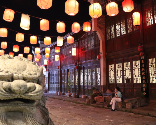 向东街的夜晚,别有风情。华灯初上,火红的灯笼随风摇曳,老街焕发出新的生机,仿佛一条美丽的彩带,流光四溢。晚上漫步在青石板路上,感受岁月的沧桑,享受片刻的宁静,处处散发着诗画风韵,别有一番意趣。行走在新化向东街,仿佛置身历史的梦境中,有着别样的宁静与浪漫。向东街,对新化人来说,不仅仅是一条街道,更是一段历史、一种文化、一丝情怀。立一个心愿,找机会去漫步向东街吧!在这里您定能感受它的古老与韵味,聆听历史的脚步,品味那最抚凡人心的人间烟火气。