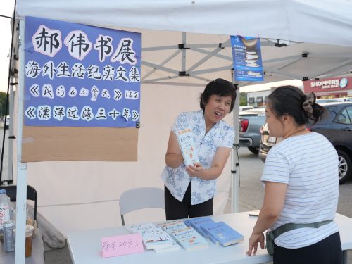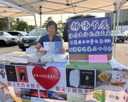 多伦多资深华文媒体作家、海外中文教师郝伟(笔名:玮仁)携带她自费出版的海外留学移民生活纪实文集《我们在加拿大》、《我们在加拿大(2)》和《漂洋过海三十年》,于9月13-15日在士嘉堡Woodside Square购物中心举行的“2024龙年中秋美食嘉年华”活动上,与读者现场交流,并签名售书,得到各界人士关注和读者的热情支持。
