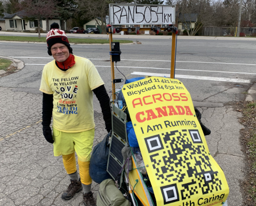 被称为“黄色跑者(The Fellow in Yellow)”的特雷弗·雷德蒙德(Trevor Redmond)是一位不容忽视的跑者。这位53岁的新斯科舍(Nova Scotian)省居民全身穿着醒目的黄色,目前正在横跨加拿大跑步。11月28日,他途经滑铁卢地区的一些路段。