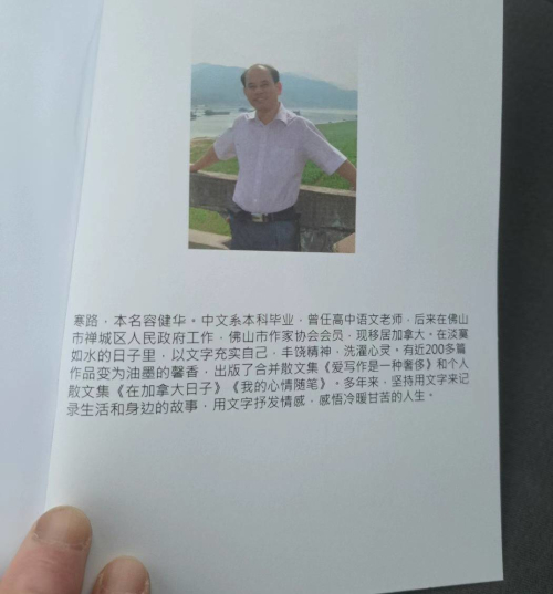 至于散文集《趟过生活之河》文字之美,可读性之高,还得等待读者您去自己体验!小编的唯一呼吁,那就是希望更多的人去支持大家写作!在加拿大,中文写作尤其不容易,既然我们有机会认识包括寒路在内的,默默耕耘的一批作家,我们能够做的就是去购买他们的书,用心阅读,并积极分享自己的感受,让更多的人有机会读到他们的书!
