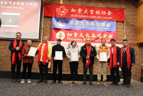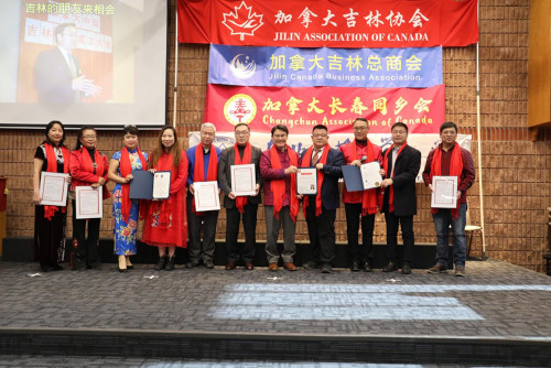 今年恰逢加拿大吉林协会成立20周年,联欢会上播放了组委会精心录制的20年回顾视频,创会会长公猛男现场深情回顾当年的艰辛与成就,回忆20年前场景,公会长一度哽咽。正如吉林同乡 Suni在老乡群里发文回忆道“(吉林协会成立大会上) 好多对同学,邻居,朋友在那里相遇,惊呀,喊叫,哭泣,混作一团。异国他乡的不期而遇,孤独,思乡之情一下烟消云去。”正是这份浓浓的同乡情谊,正是创会元老们与每一届理事、老乡们的无私奉献,让吉林协会二十年来逐渐壮大、团结一心,为吉林老乡、为华裔社区做出了巨大贡献!到场的约克区议员何胡景、列治文山市议员崔冰辉、万锦市议员杨绮清与现任吉林协会会长杨光共同为在场的创会功勋代表公猛男、姜祖卿、石生利、金春爱及May Hou分别颁发“20年社区服务荣誉证书”,以表达全体吉林同乡对创会功勋们二十来年贡献的认可与感谢!
