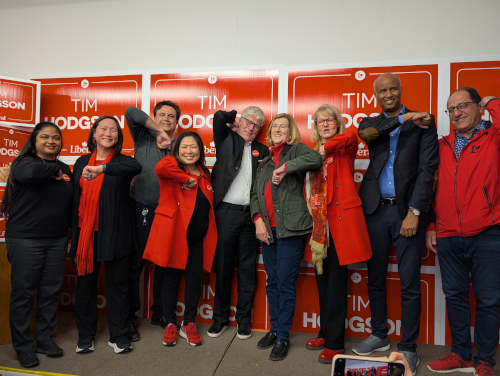 10月21日下午1点,Markham-Thornhill自由党联邦候选人天·河山(Tim Hodgson)在万锦市Denison Centre举行竞选办公室启动仪式,吸引近500名支持者到场。现场气氛热烈,社区民众、各级政要及商界领袖齐聚,展现对天·河山的广泛支持。