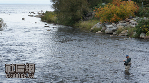 出乎我们的意料,不知道是大家都去看红叶去了呢?还是其他什么原因,我们没有遇见太多的华人在观赏三文鱼。只有两位老兄在很专业地钓鱼。