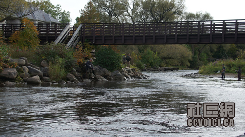 [本刊记者 James摄影报道] 据网络介绍,Thornbury观赏三文鱼洄游的地方,也算是比较著名的景点之一了。所以周日从家里出发,沿着401高速往东,再沿着400号公路往北走,在26号公路口下高速。
