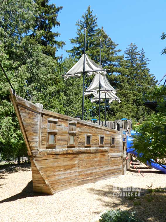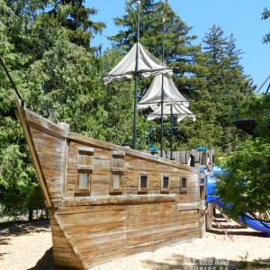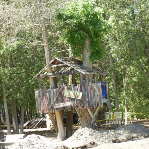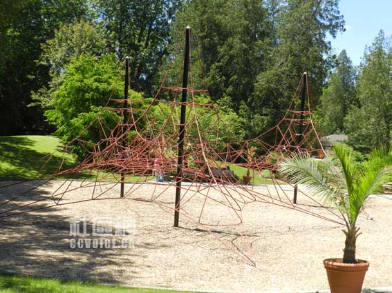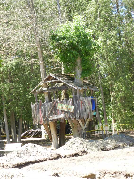 接着进入The Village & Backwoods部分,主要看点有少儿和平教堂(Children’s Peach Chapel)和熟知的Tree House(不过这一部分正在整修)。当然,几只可爱的大青蛙或跳、或坐,藏在树丛中,等候你的光临。再往里走,就到了海盗岛(Pirate’s Island),可能是男孩子,特别是年龄稍大的比较喜欢的地方。这里可以游玩的包括入口处的海盗船(Pirate Ship)、攀爬用的网索(Net Play)、海盗训练塔(Pirate’s Training Tower)和攀沿岩石墙(Rock Climbing Wall)等。