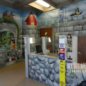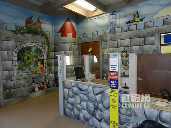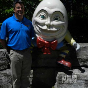游玩之后,笔者再折回办公区,John很高兴地与笔者攀谈。John已经在此公园工作7年之久,所以非常熟悉公园的一草一木。John介绍说,“公园每年都在翻新,增添新的内容,所以回头游客相当多。关于公园的造型,大多是北美非常流行神话或传说,所以并非特意向三方公司购买。厢房,许多公司来此借鉴我们的造型,将一些元素利用到他们的造型当中去。”