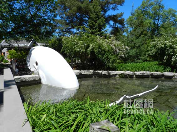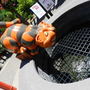 Storybook Gardens入口非常特别,不仅外观是城堡的样子,而且入口处设置和墙壁上的图画都是很吸引人的,当然这是吸引小孩子。进入之后,就有一个好运井(Wishing Well),与中国大陆看到的有些类似,就是你可以丢硬币的那种。接着,我按逆时针方向探索公园,看到的是一部分藏在说中的鲸鱼,在现在看来非常简单。但后来据负责人John介绍,这个鲸鱼还非常有名,它是当年创园时就有的景点。