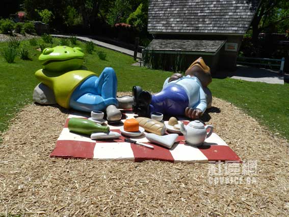 当笔者问及亮点时,John介绍说,“对于小孩来说,每一个景点都有美好的故事或传说,而且都是百听不厌的。假若父母能根据每个故事进行延伸的话,小孩会更有兴趣。整体来说,我们吸引2-8岁的小孩要多一些,他们往往会在这里整天整天地玩得,相当于自家的后院一样。在夏天,每到周末,我们会安排不同的节目,吸引的人会更多一些。而在冬天,我们的冰道也吸引一大批游客的。在盛夏,我们公园确实是全家欢的场所,小孩在外面玩累了,可以先走出公园,在周边地区进行野餐之后,再可返回公园,开始下午的游玩。”