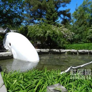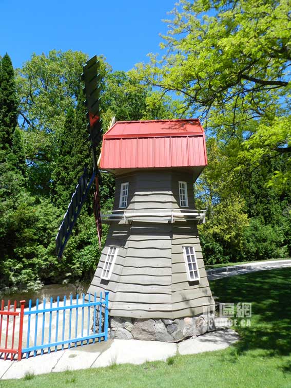离开Eldon House之后,笔者沿着Queens街,并入Riverside路,一直往西,到达Wonderland路之后左拐往南。到达Springbank路之后,右拐接着往西走,左手边就是浩大Springbank公园,基本上是沿着这个公园忘西走。到达Commissioners路之后,往右拐,不久之后又可以看到Storybook Gardens的招牌,从此拐入,紧接下一个十字路口右拐,就来到Storybook Gardens。