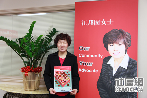 见面会上,江律师还向大家介绍了竞选的筹备情况。她说:“自宣布竞选议员候选人以来的这一个月中,竞选准备工作取得了很大的成果,我也能感到自身的成长。我很感谢每一个支持我的朋友们,其中包括坚决投我一票的支持者,包括每天为我东奔西走在外、朝九晚五在办公室的志愿者们,还包括在座的媒体朋友们,有了你们的关注和支持,我感觉每天精神抖擞,感觉走出这一步,是特别有意义的一件事。在加拿大,随着华人参政议政的从无到有,到高素质,我觉得自己现在所做的工作就是为华人铺路。现在我的每一天都很有意义,我铭记在心的指导方针就是:‘Leave everything else and do my best’(做认为自己应该做的事情,尽自己的全力!)”