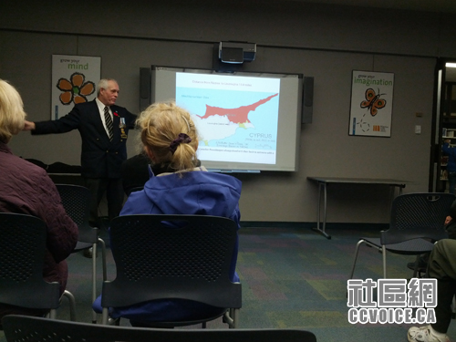 正如小说中所描述,在国内接受基础训练不久,Frank就被送到塞浦路斯(Cyprus)担任维和部队。这一点,在他所做的讲座时也提及。Frank谈到几点:第一,在前往该地时,他自己对当地的时局一点都不了解,部队也没有给大家作动员。第二,当时的情况是非常恶劣的,而且是相当危险的。现在回想起来,Frank都觉得很恐怖,但是当时年轻,而且不关心时政,也就懵懵懂懂在那里执行任务。第三,担任维和部队的工作并不是儿戏,工作辛苦不说,危险系数是相当高的。通过许多照片,Frank介绍了当年维和部队的生活。尽管只有6个月,但这段经历给Frank的印象之深,可能是不可估量的。
