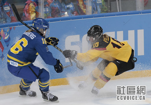 当地时间2月11日,在索契冬奥会冰球比赛的一场小组赛中,瑞典队4:0大胜德国队