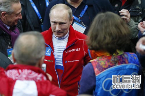 俄罗斯总统普京到场庆祝俄罗斯队摘金,并与队员合影