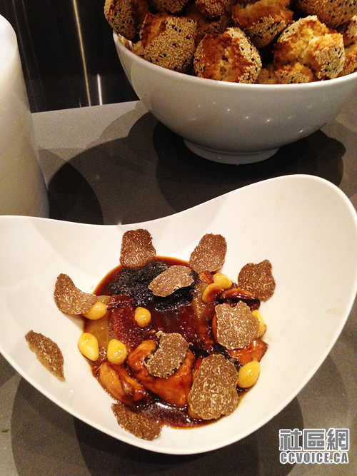 名厨李国纬独特创意,精心设计了多款佳肴, 为顾客带来一个难忘的元旦。以法国进口的黑松露作重点推荐,头盘有八宝黑松露海鲜点心拼盘(8件$32)为盛宴拉开序幕。而脆米松露豆腐鸡肉肠粉(8件$28)则提供了点心以外的选择,嫩滑的传统肠粉,加入豆腐、香菰、黑松露与鲜味豆汁,必令人回味无穷。
